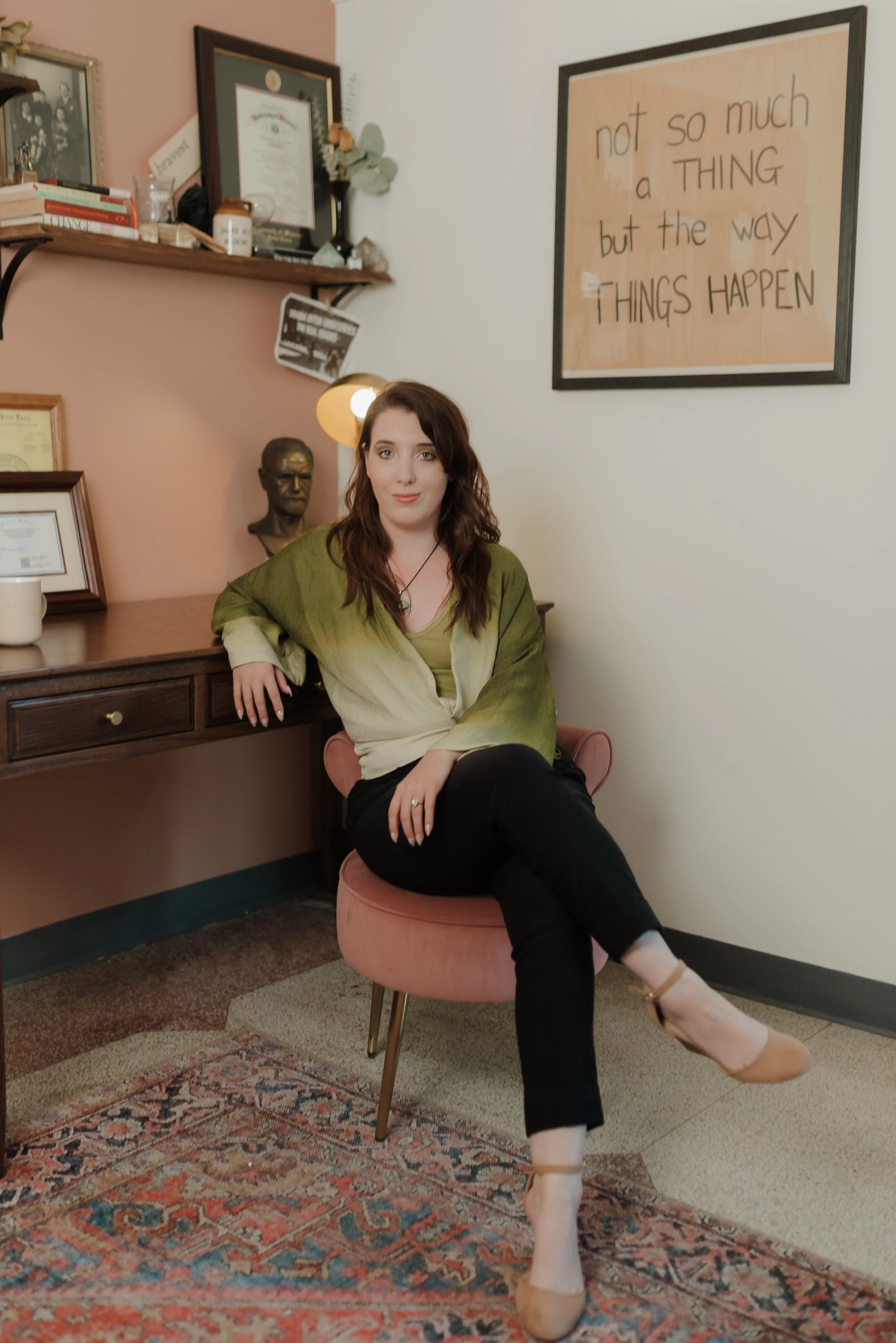 A St. Louis native, I began working towards my Master’s in Mental Health Counseling at the University of Missouri-St. Louis in Fall 2023, after completing my undergraduate degree online through Southern New Hampshire University. I’m now entering the final stages of my degree, having recently completed a 100-hour practicum experience with the Counseling and Social Advocacy Center, and I am excited to be working closely alongside Kathryn to further develop my clinical and therapeutic skills. I’m also thrilled to be embarking on this journey alongside my husband, a fellow UMSL graduate student in the counseling program who is specializing in play therapy and work with kids.